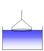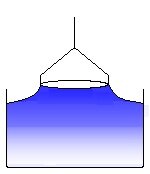 The ring touches the liquid surface. The measured force decreases slightly due to buoyancy of the ring. (2)
