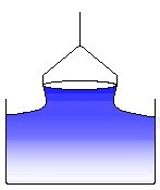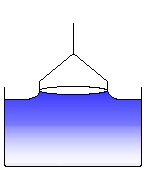 In the du Noüy ring method, a thin wire ring is inserted below the interface (which can be either a liquid-vapour or liquid-liquid interface) and held horizontal. Then the ring is pulled up through the interface. The force F measured by a balance goes through a maximum Fmax [[i]]. In a first approximation the surface tension g is given by